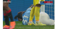 比赛第86分钟,新鹏城外援奥乌苏在禁区内争抢头球时倒地,随后VAR介入,主裁判王迪在前往场边查看后,示意不是点球,比赛继续。