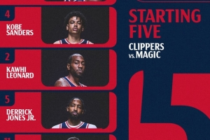 赛前,快船公布首发:邓恩、桑德斯、小卡、琼斯、大洛。