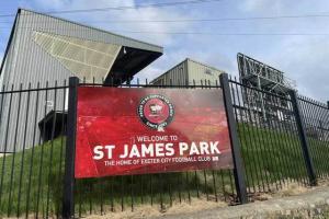 英甲球队埃克塞特城的主场,也叫圣詹姆斯公园球场,有西班牙球迷从伦敦自驾前往圣詹姆斯球场看纽卡斯尔联对阵巴萨的欧冠,导航导错了,去了埃克塞特,埃克塞特城俱乐部工作人员随后贴心地送给了他一张英甲门票。