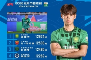 体育资讯3月16日讯 今日,中超联赛官方公布了第2轮联赛跑动榜,18岁国安小将邓捷夫以12924米的跑动距离登顶跑动榜。