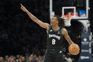 上半场,森林狼两位后卫海兰德和道苏姆均有出色发挥,海兰德14分钟10投5中,三分6中2、罚球2中2拿到14分2篮板1助攻1抢断,正负值+4;