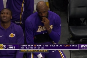 上一篇: 不常见!詹姆斯生涯第7次半场0分&第3次上半场挂蛋 上一次在去年