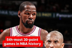 据统计,这是杜兰特常规赛生涯第432次得分30+,超越科比·布莱恩特,独居NBA历史第五,仅次于詹姆斯(575)、乔丹(562)、张伯伦(515)和卡尔·马龙(435)。